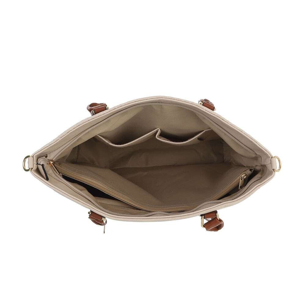 De tas is gemaakt van hoogwaardig PU kunstleer, heeft 2 compartimenten en 1 met een extra compartimenten in het midden met ritssluiting. Op de achterkant bevindt zich nog een zijvak met sluiting. De tas is gemakkelijk draagbaar aan het enkele handvat en dankzij de bijgeleverde schouderband ook heel praktisch te dragen als schoudertas. De perfecte, ruime handtas met een luxe uitstraling om al je dagelijkse essentials in mee te nemen.